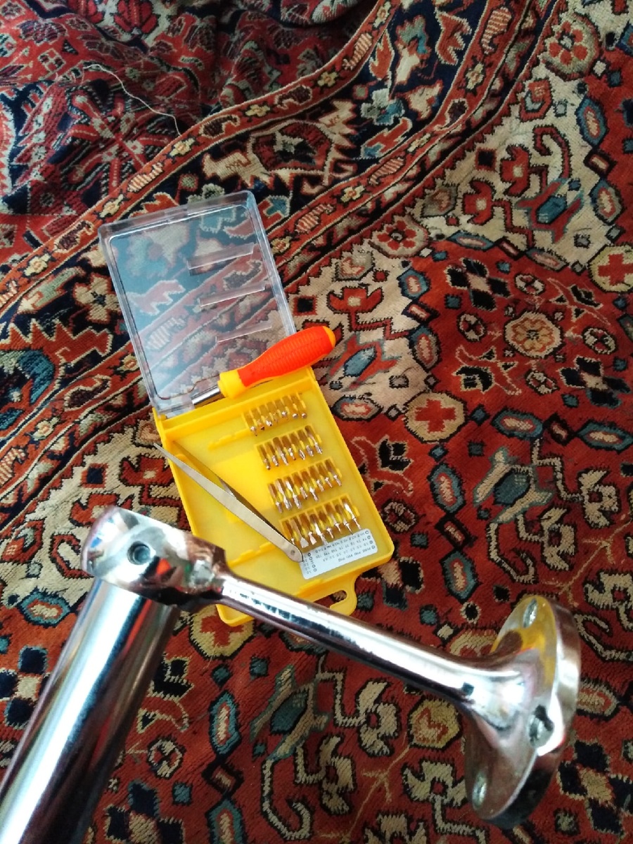 Мебельщики - затейники те ещё. Напридумывали стописяттыщмильёнов дебильных крепежей, и мучайся тут потом! Хорошо, что я - запасливый параноик, и у меня в комоде есть всякое неожиданное и внезапно нужное, когда в голову приходят всякие идеи по поводу того, как использовать то, что жалко выкинуть! Вот нахрена я микроотвёртки купила 2 года назад? А ВОТ! Оказались ОЧЕНЬ нужны, чтобы снять со штанги
