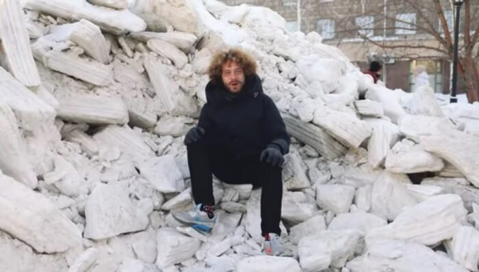 Без труда найдя груду снега высотой выше двух метров, он с удовольствием попозировал на ее фоне, картинно возмутившись уборкой улиц в третьем городе страны.