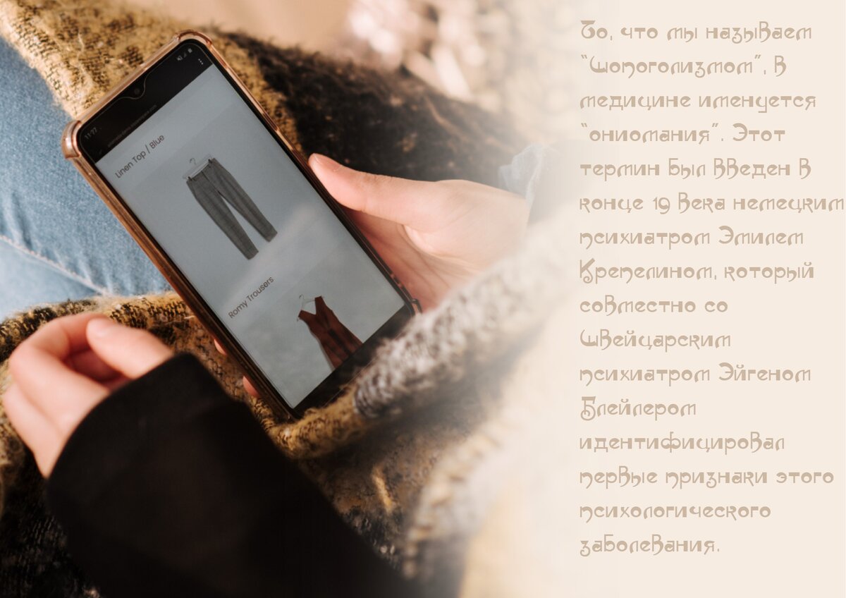 То, что мы называем “шопоголизмом”, в медицине именуется “ониомания”. Этот термин был введен в конце 19 века немецким психиатром Эмилем Крепелином, который совместно со швейцарским психиатром Эйгеном Блейлером идентифицировал первые признаки этого психологического заболевания. Самодиагностика Шопоголизм диагностируется по следующим критериям: В промежутках между совершением покупок у шопоголиков обычно нарастает напряжение, которое значительно снижается после совершения покупок. Однако впоследствии возникающее чувство вины снижает удовольствие. Если вы наблюдаете у себя подобные “симптомы”, скорее всего, у вас уже появилась зависимость от покупок. Шопоголики бывают разные Условно психологи выделяют четыре вида шопоголиков: "Экономные" Такой тип привлекают всевозможные распродажи, мегаскидки и тому подобные приманки. Для “экономного” шопоголика главное не качество приобретенных вещей, а их количество. "Фанаты" Эти люди буквально бредят брендовыми вещами, не жалеют деньги на их пок