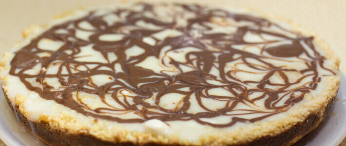 Заливка: сметану смешать со сгущенкой. Заливаем горячий пирог прямо в форме. Растопленным шоколадом сделать узоры. Форму снять, когда пирог окончательно остынет. Пирог готов! Приятного аппетита.