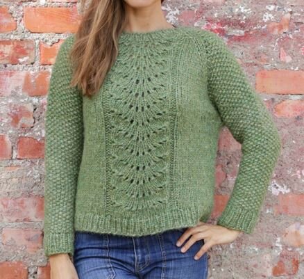 Красивый пуловер спицами с узором по центру