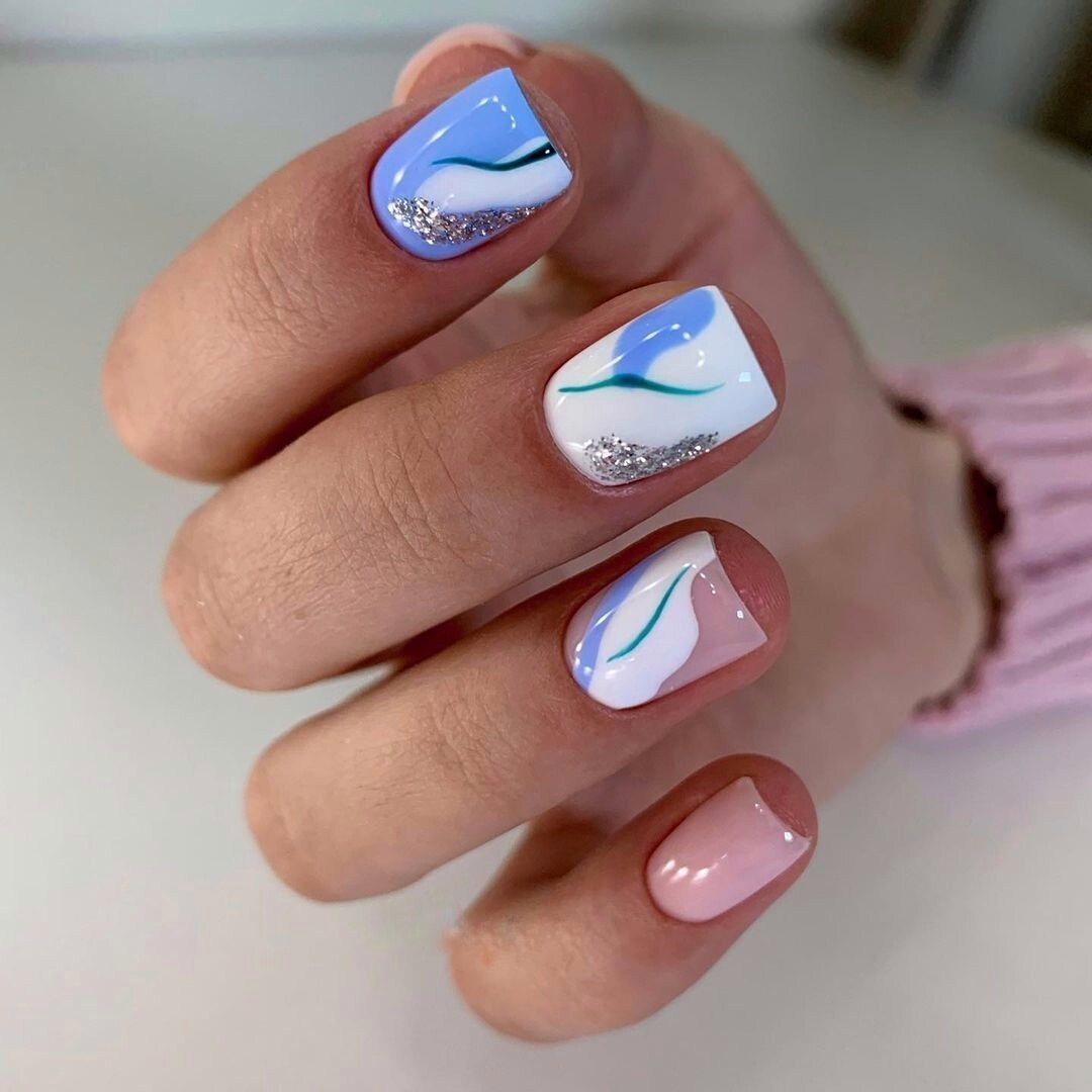 На смену насыщенным синим оттенкам зимнего сезона, приходит нежный и светлый весенний дизайн ногтей в голубых тонах. Кроме того, модными этой весной будут бирюзовые и мятные оттенки, которые в тандеме с голубым цветом дарят безупречную палитру для нежнейших вариантов весеннего дизайна