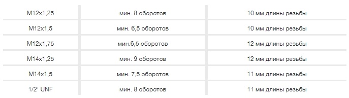 Чтобы скомпенсировать вылет и вернуться к стандартным значениям, нам нужны проставки 6 мм (ET 45 у дисков и ET 39 родной вылет). Проставки с небольшой толщиной (до 15мм) обычно являются сквозными, то есть просто устанавливаются между тормозным диском и колесным диском на штатный крепеж. Но! Важно учитывать, что рабочая часть крепежа с проставками становиться короче. Ниже указаны минимальное чисто оборотов резьбы.
