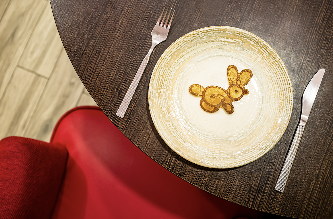 Не так давно я зашёл в Теремок и, несмотря на то, что заказал себе суп, неожиданно получил маленький блин в виде зайчонка в подарок от повара, которая явно была в хорошем настроении (я был не единственным получившим зверушку).
