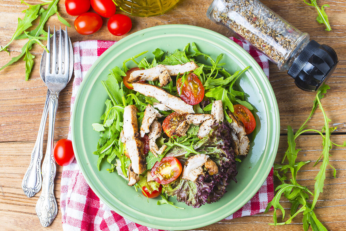3. 200 г отварных куриных грудок + большая порция салата из овощей