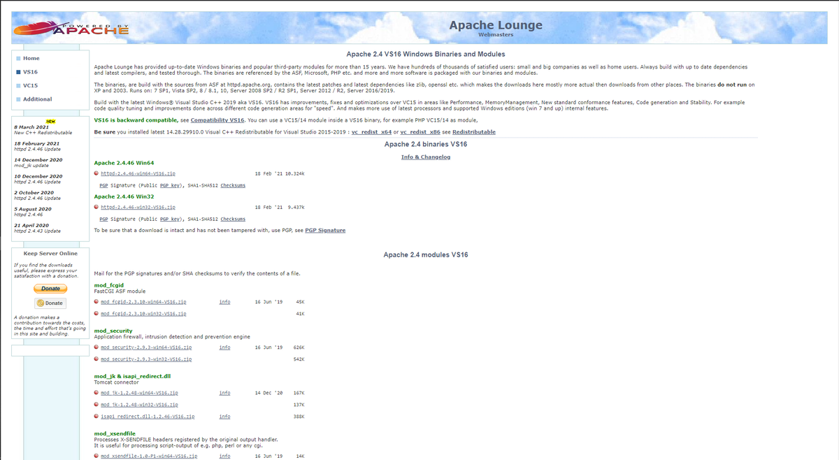 Содержимое скаченного архива httpd-2.4.46-win64-VS16.zip распакуйте в C:\Server\bin\ .