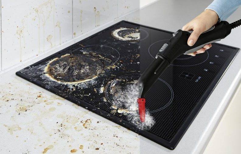 Для обработки поверхностей используйте разные средства. Различают следующие: средства для бытовой химии – помогают удалить жир. Уксус полезный тем, что удаляет подручные средства и пароочиститель – убирает загрязнения.