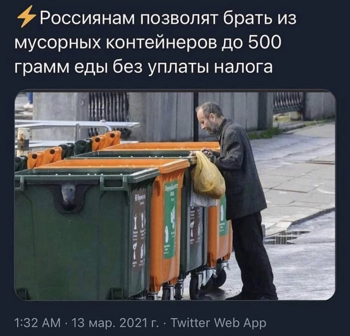Россиянам позволят брать из мусорных баков (контейнеров) до 500 грамм еды без уплаты налога. СПАСИБО ВАМ ОГРОМНОЕ, даже здесь решили ограничить😅😂