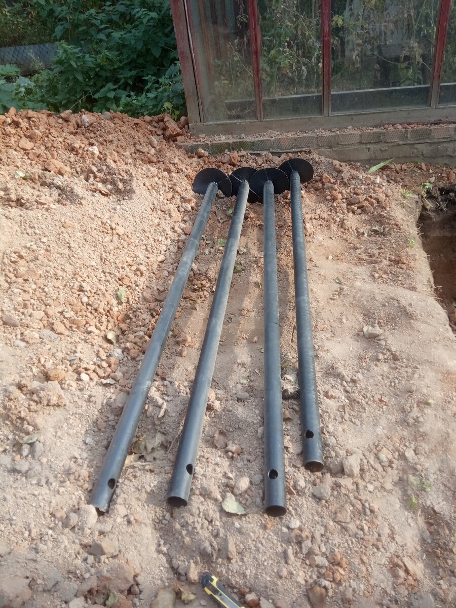 Процесс закручивания свай, как и процесс бурения оказался не из легких, к тому же мне не удалось купить рычажную штангу(что это смотреть здесь.). И нам пришлось подбирать арматуру в гараже, чтобы хоть как - то их закрутить. Арматуры то гнулись, то просто ломались, и намучившись всё - таки закрутили.