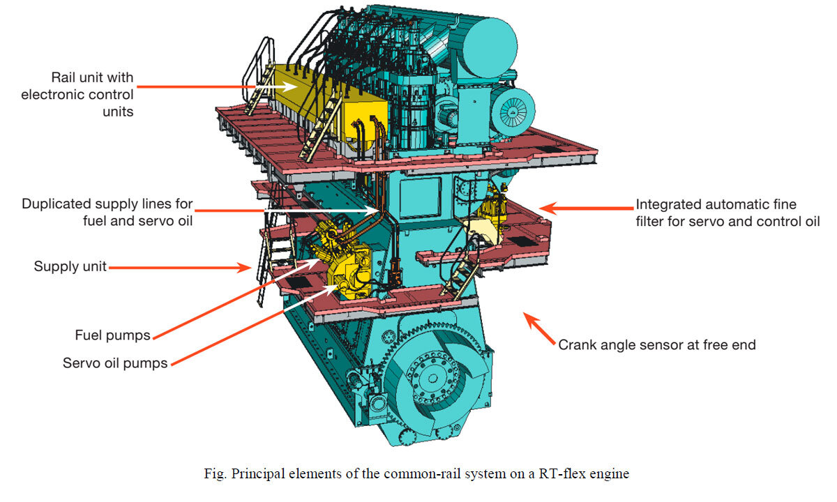 Двигатели RT-flex таким образом оборудованы с системами коллектора системы впрыска топлива для: