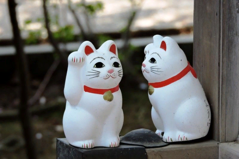 Манеки-неко (招き猫) – это японский талисман удачи в виде котенка с поднятой вверх лапкой. Название буквально можно перевести как «манящая кошка». В Японии его также называют «кот, приносящий счастье», «кот удачи» или «денежный кот». Традиционно оберег изготавливают из керамики и раскрашивают белый фон разными оттенками. В Японии существует множество талисманов удачи, а манеки-неко— один из самых популярных.