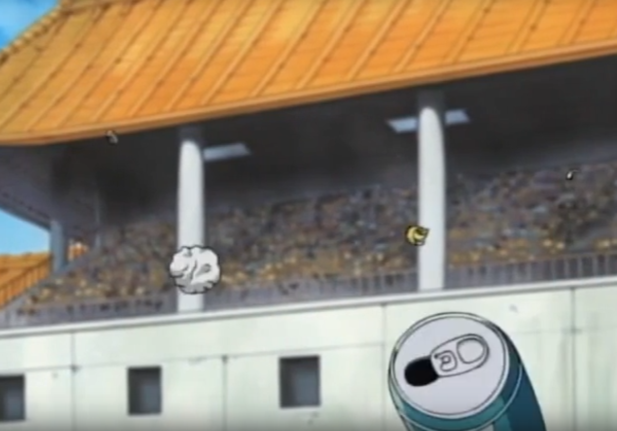 Да, очередная вставка, отсутствующая в манге, добавления ради шутки, но если взять происходящее за истину, то на трибунах сидит какое-то бескультурное быдло, не находите?