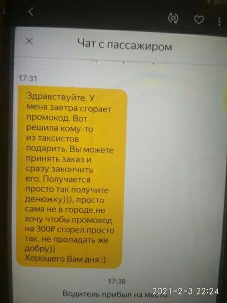 Зашел на днях в местную группу Яндекс такси Вконтакте и увидел много отзывов про странные заказы. Непонятно, фейк это или кто-то специально оформляет подобное. Решил написать с целью предупредить коллег.