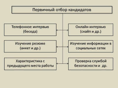 Схематически первичный отбор кандидатов можно представить следующей схемой: