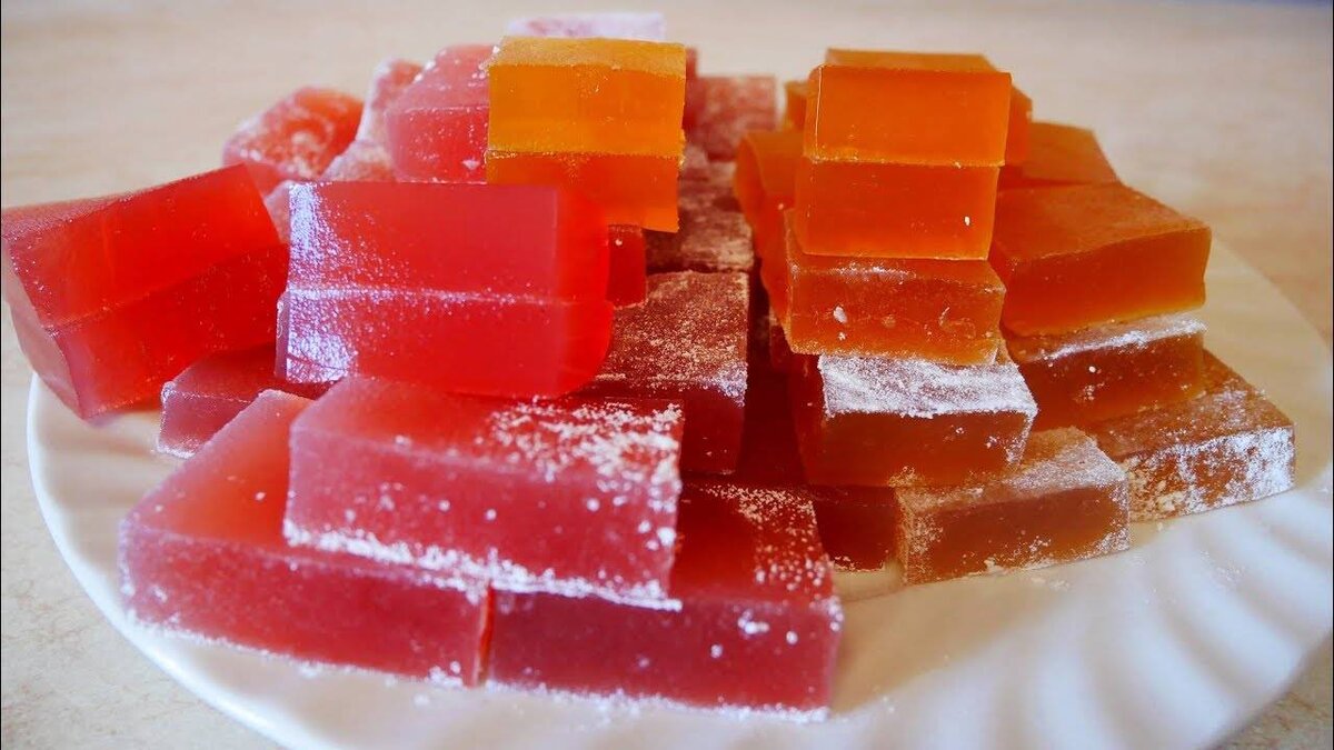 7. Перед подачей к столу мармелад нарезаем на кусочки, посыпаем их сверху сахаром.