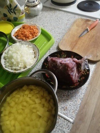 1. Берём мясо и нарезаем некрупными кусками;