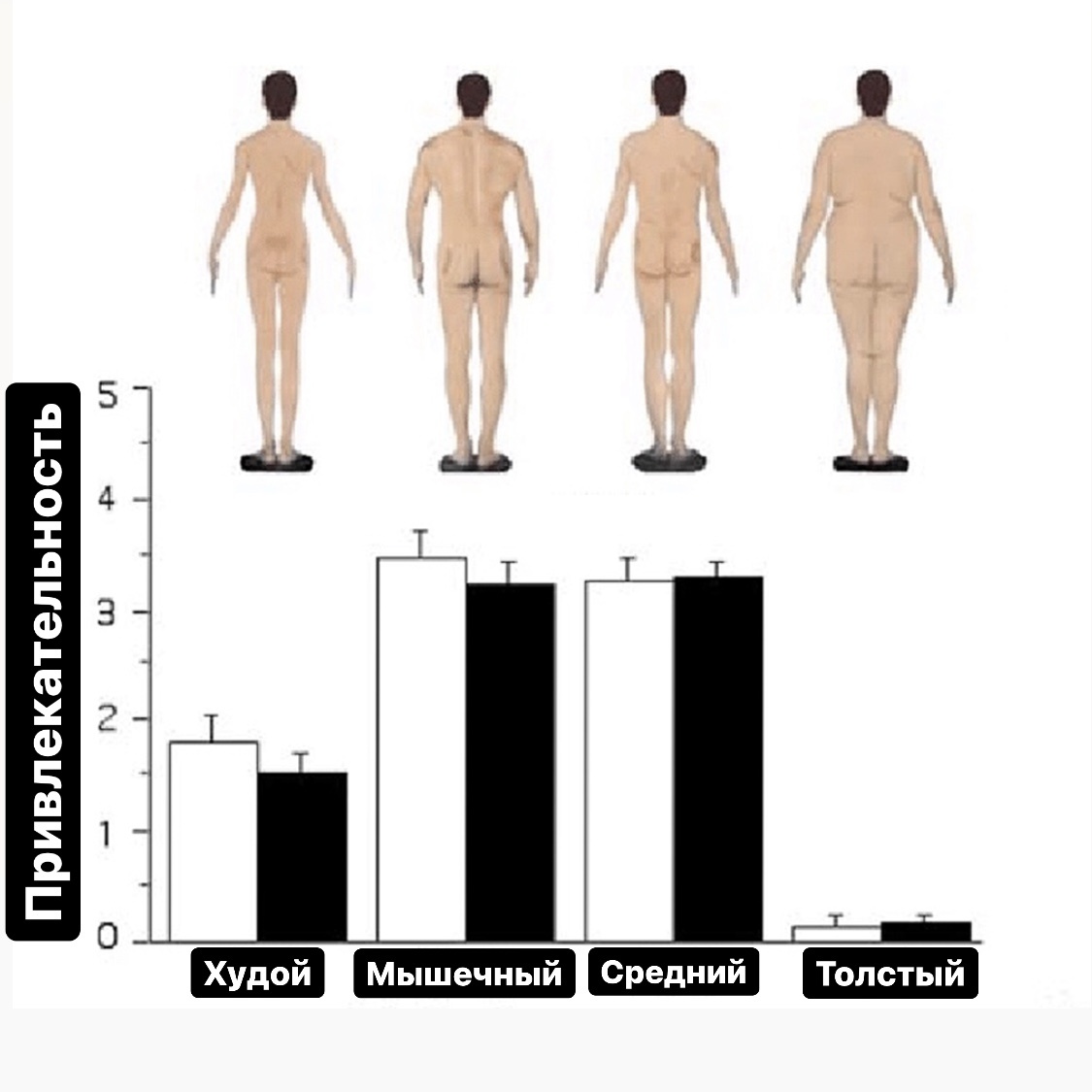 В исследовании взяли 266 девушек в возрасте 20 лет и попросили их выбрать наиболее привлекательную мужскую фигуру.