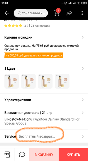 Но бывает так, что всё соответствует, только вот лично тебе оказалось мало, велико, или вообще не понравилось в живую. Для таких случаев на Али существует сервис бесплатный возврат