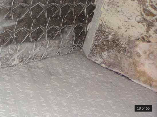 Камера в конце нисходящего коридора: на потолке следы древнего ремонта – участок со следами замазки покрыт внушительным слоем копоти.