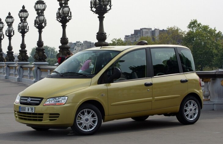 Fiat Multipla – компактнык минивены, которые начали сходить с конвейера завода в Италии в 1998 году. Автомобиль, созданный на платформе Fiat Brava , имел короткий (всего четыре метра), но при этом очень высокий и широкий кузов. Благодаря этому машина имела шестиместный салон: и в первом, и во втором ряду было по три кресла. Внешний вид минивэна тоже был необычным: высокие боковые стекла, низкий
