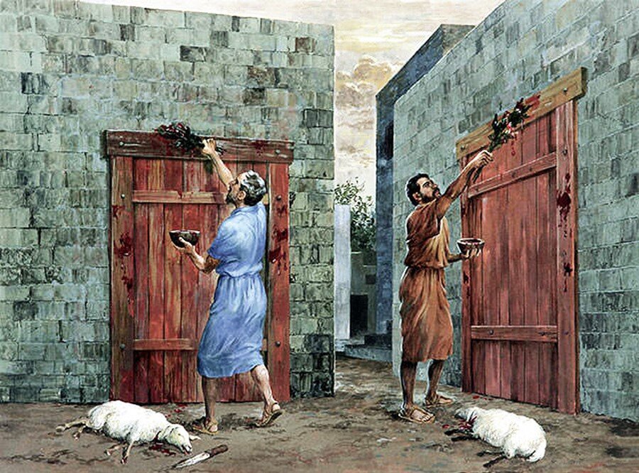 Вот праздники Господни, священные собрания, которые вы должны созывать в свое время: в первый месяц, в четырнадцатый день месяца, вечером Пасха Господня… (Левит 23:4,5). Слово «пасха», это греческая транслитерация еврейского слова פסח , происходящего от глагола פָסַח , что значит «пройти мимо». Десятая, финальная египетская казнь должна была свершиться ночью с 14 на 15 авива, то есть первого месяца по установленному Богом календарю. Это бедствие заключалось в том, что по всей земле Египетской в эту ночь пройдет Господь и отнимет жизнь у всего первородного, от человека до животного. Он посетит каждый дом, кроме тех домов, дверные косяки которых были отмечены кровью однолетнего агнца, который был заклан, испечен и съеден с горькими травами. Кровь агнца, являлась знамением того, что в этом доме находятся послушные Божьему слову люди, они исполнили то, что заповедал Бог, и Он пройдет мимо этих домов и пощадит первенцев, находящихся там. Но если подумать, то мы увидим в эту ночь, смерть посетила все без исключения дома. В домах послушных слову Божию евреев все первенцы остались живы, только потому, что накануне, там умер агнец. Именно его смерть принесла избавление людям от губительной язвы (Исх. 12:13).