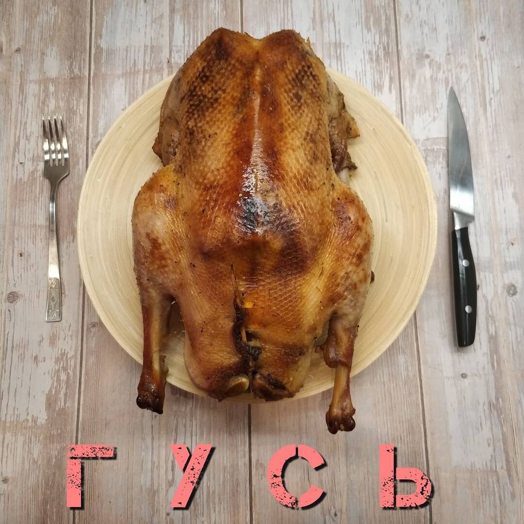 Гуся медленно разморозить (в холодильнике), помыть, ощипать пеньки перьев. Предварительно замочить в соленом растворе 1 ст. л. соли и 0,5 ст.л. сахара на 1 литр воды (птицу залить целиком) и убрать в холодильник на сутки. Потом обмазать маринадом: цедра 2-х апельсинов, соевый соус, оливковое масло, чеснок, перец, мед, горчица. Мариновать в холодильнике еще 12-24 часа. Потом нашпиговать гуся дольками яблок и апельсинов, дыру зашпилить зубочистками. Обернуть птицу в несколько слоев фольги, положить в глубокий противень. Запекать в духовке 1 час при 220 градусах, затем снизить температуру до 180 и запекать еще 2 часа. Затем раскрыть фольгу и задать корочку под верхним нагревом еще минут 20-30.