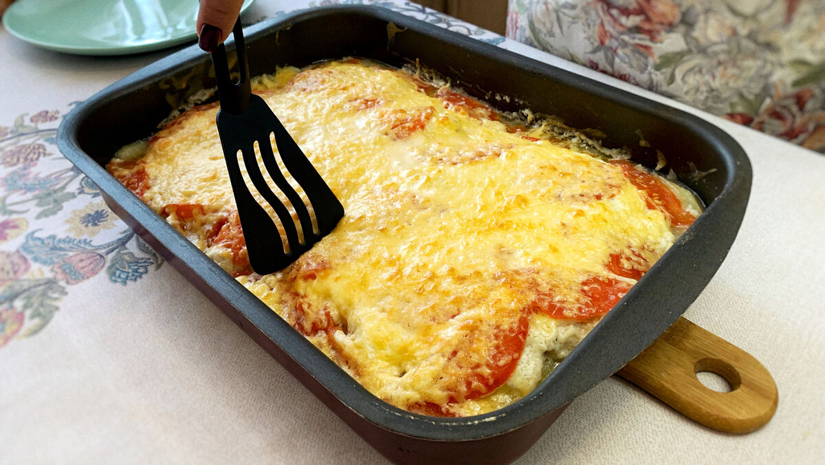 10. Выкладываем кусочки филе поверх лука