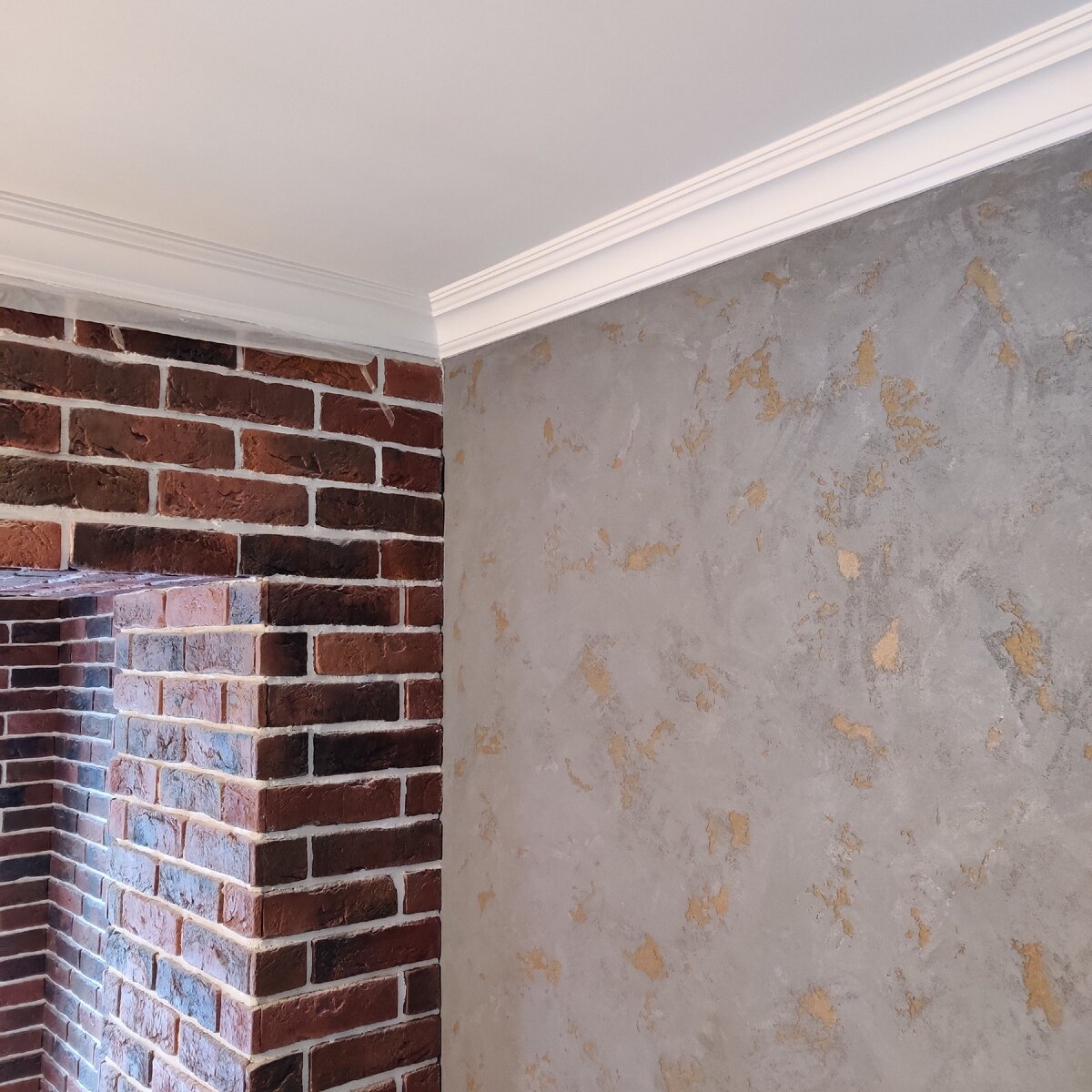 Сегодня мы закончили делать кабинет в Таунхаусе🏘️. На стены мы нанесли декоративный арт-бетон с золотыми прожилками🌟. Сверху покрыли лёгким перламутром для выделения мелкой структуры бетона, что подчеркивает его благородство. Помещение получилось достаточно брутальным😎, чего и добивалась наша заказчщица в кабинете.