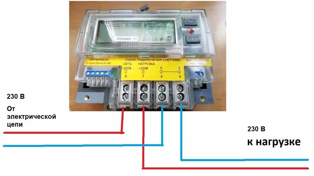 В качестве примера приведу одну из схем подключения электросчетчика Меркурий, как одной из распространенных моделей на постсоветском пространстве: