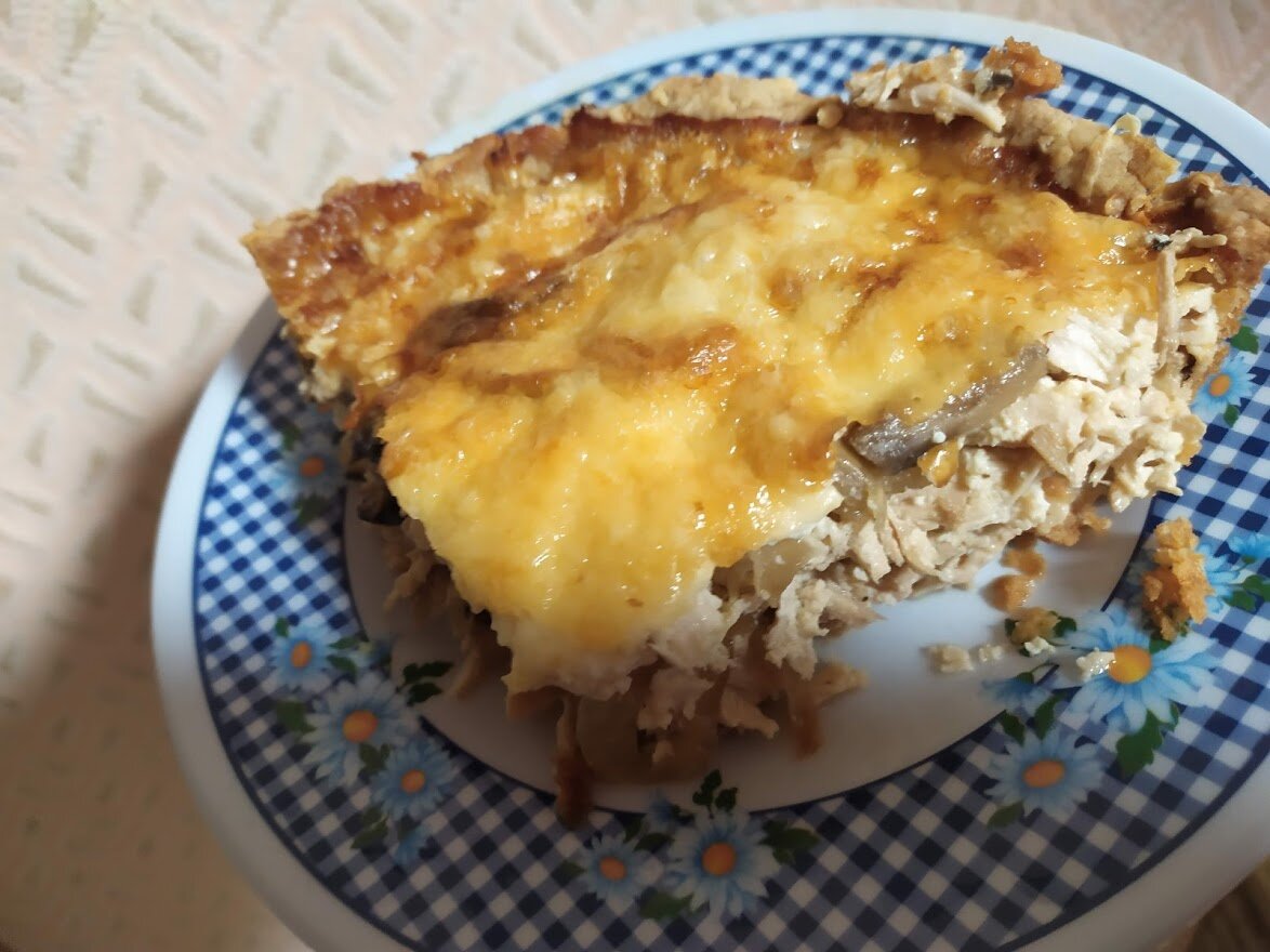 Я, заглянув в свой холодильник, решила приготовить киш с курицей и грибами.