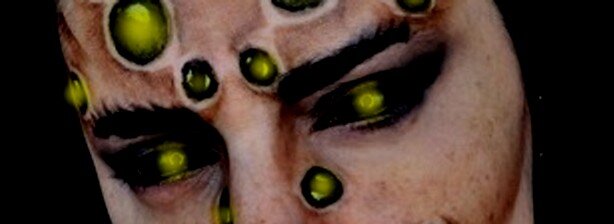 Смотрит, а через окно к ней в опочивальню баба страшная влезает. Вместо рта жвалы паучьи, глаза блюдцами жёлтыми горят, сама сгорбленная. Влезла, встала над девушкой, рубаху с себя скинула. Голая стоит, а от грудей до самого пупа в брюхе у неё пасть раскрывается. Губы толстые, волосатые, и зубы кривые.