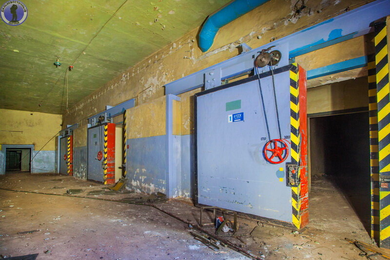 Которые перекрывали многотонные сдвижные железобетонные затворы. И если в структуре 12-го ГУ МО всегда было принято красить такие двери в жёлто-чёрную раскраску, здесь они почему-то какие-то серо-фиолетовые.