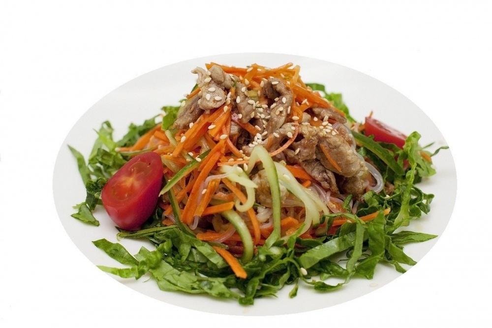 Простой по составу ,но очень сытный салат понравится вам ,если вы любите морковь по-корейски и острую еду.