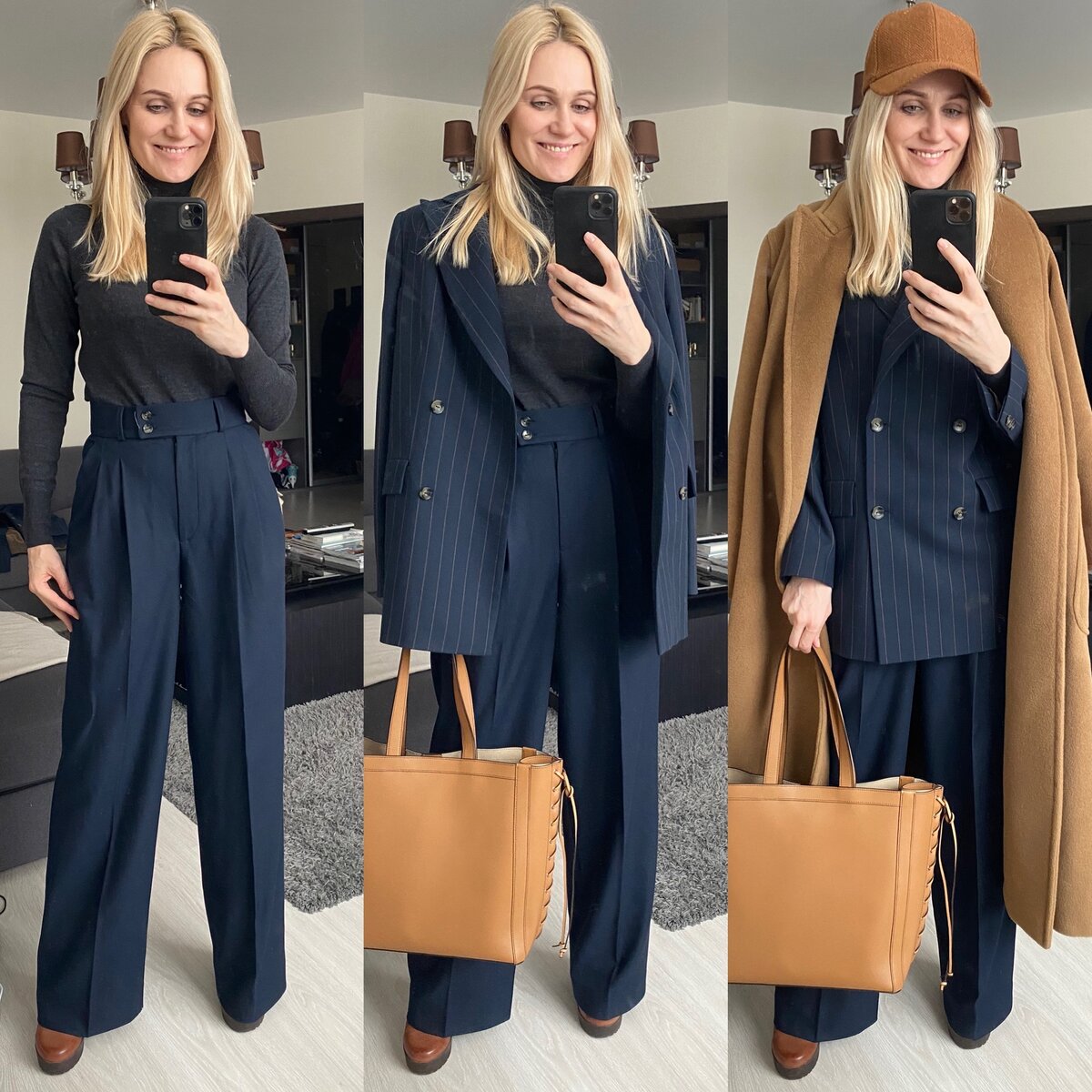 И смотрите, какая универсальность, покупаешь один костюм, а сколько вариантов образов с ним получается: