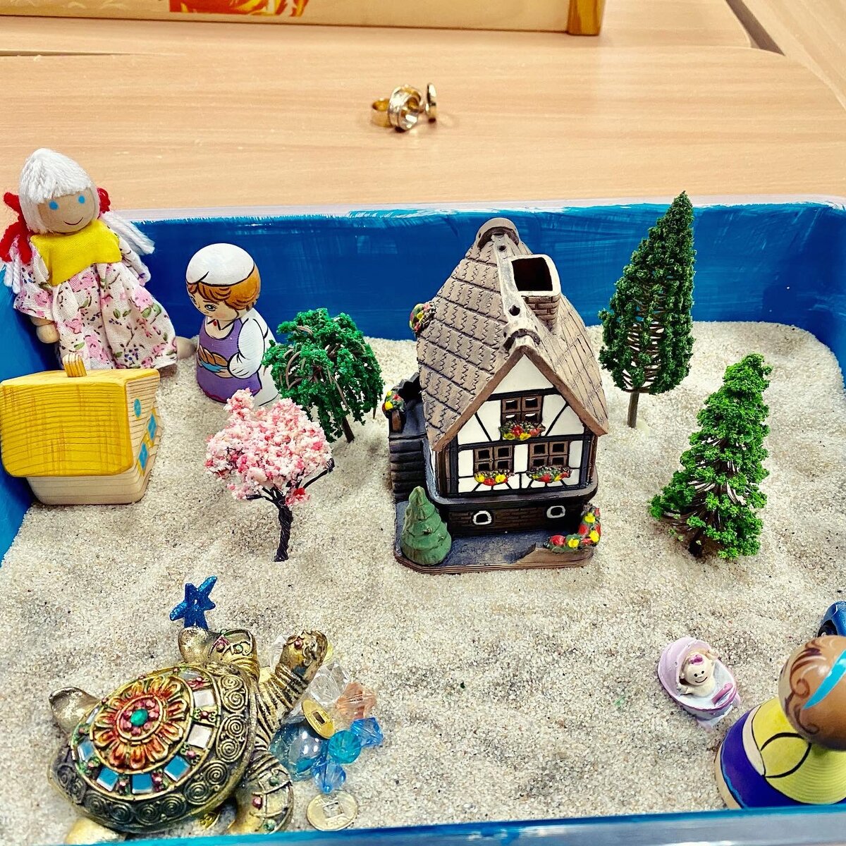 Клиент очень бережно погружается в мир своего бессознательного через контейнер песочницы, медитативно работая с ландшафтом песка, выстраивает метафору своей жизни через символы, с которыми на прямую связано наше бессознательное, а оно уже влияет на всю нашу жизнь.