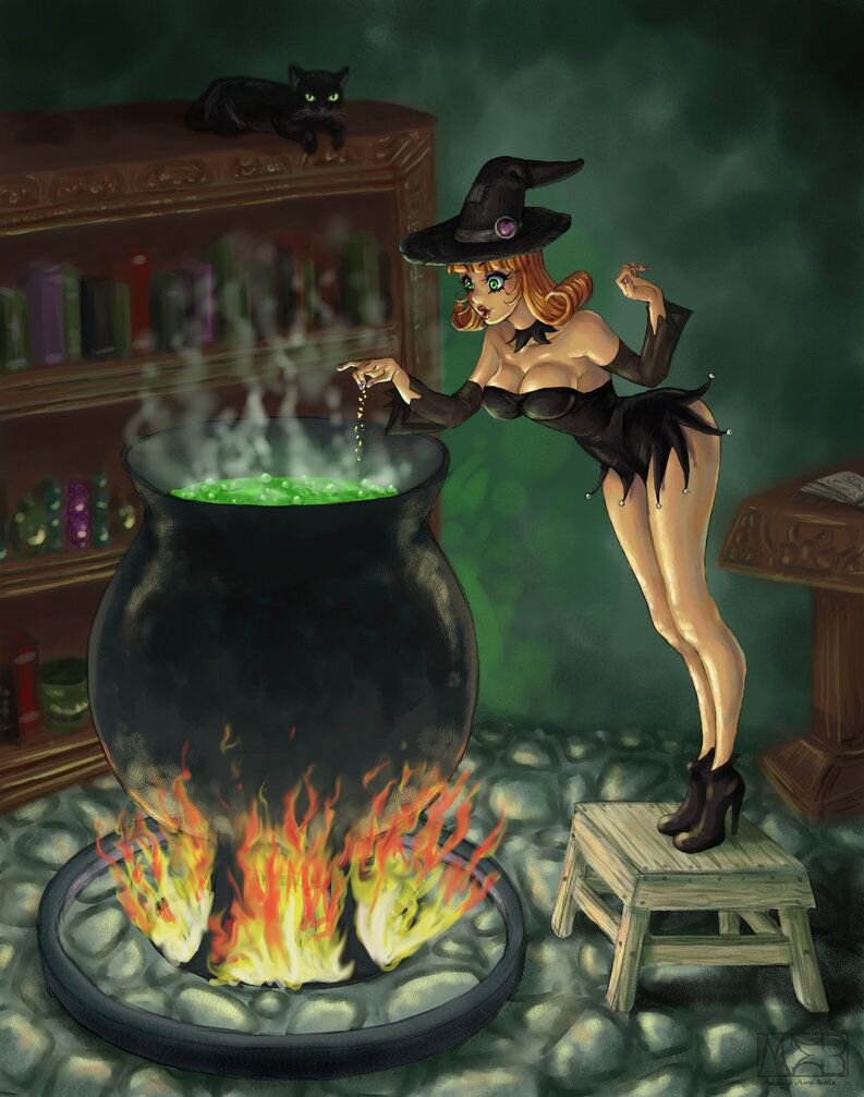 Потом кидаете в котелок по очереди предметы произносите заклинание: