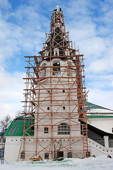В музее-заповеднике «Александровская слобода» произошло воздвижение крестов на часобитне и шатровом храме Покровской церкви. Сообщает « Уездный город А ».