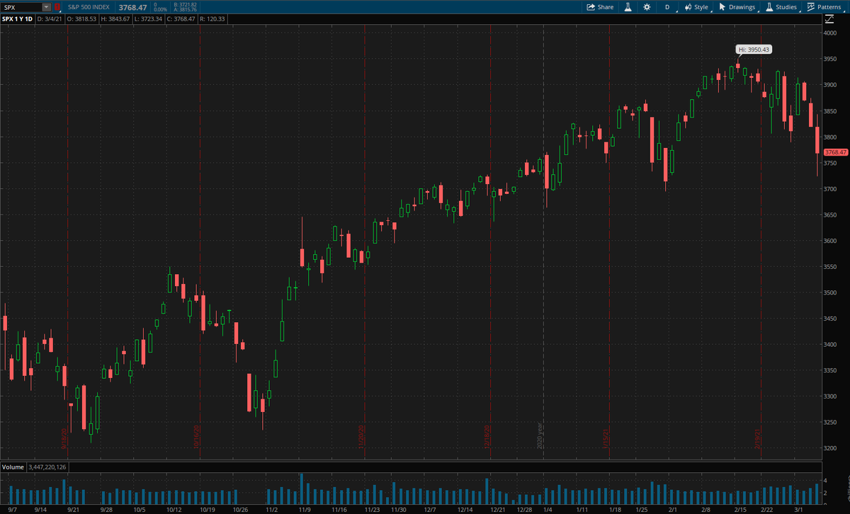 В четверг доходность 10-летних казначейских облигаций закрылась выше 1,5%, а такого не случалось уже больше года. Вот, и получили падение $SPX более 1% и пробой 50-DMA, всё логично. Вопрос теперь пойдём ли мы дальше на юг, или это уже немного подзабытый за полгода BTFD. У меня сейчас нет в этом чёткой уверенности, но продолжение коррекции до -15% было бы сейчас идеальным вариантом, о чём писал уже раньше.