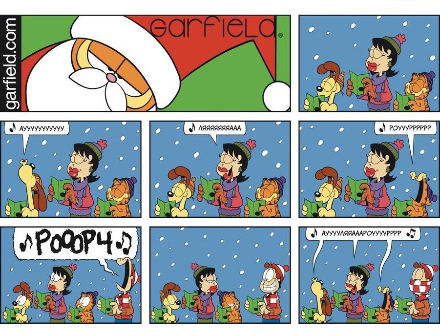 Представляю вам вторую рождественскую подборку комиксов про гарфилда с авторским переводом. В сегодняшнем выпуске вы найдете истории про рождественские пения, каток, потерянный подарок и много других увлекательных историй.