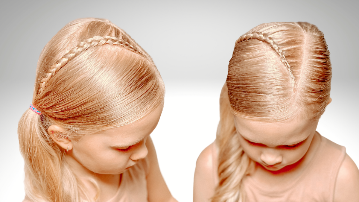 Доплетаем косичку соединяем с ранее созданным хвостом, а также собираем все свободные волосы и фиксируем резинкой, тем самым образуя хвост с боку.