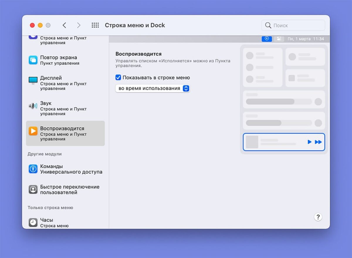 Иногда просмотр или прослушивание контента может быть фоновым процессом во время работы. При этом для управления воспроизведением приходится все время искать нужное приложение или вкладку с плеером в браузере. В macOS Big Sur есть специальное меню для управления воспроизведением всех запущенных плееров в системе.