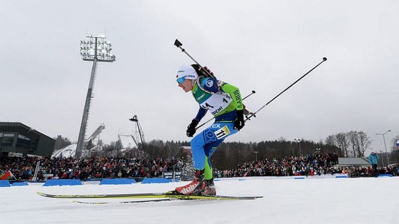Женская сборная Беларуси отстала от победителей из Швеции, которые прошли эстафету за 1 ч 3 мин 26,6 с, на 1,2 с и 9 дополнительных патронов. Елена Кручинкина не смогла удержать первую позицию в борьбе со шведкой Эльвирой Эберг. Третьими стали француженки (+27,8; 1 штрафной круг, 8 дополнительных патронов).