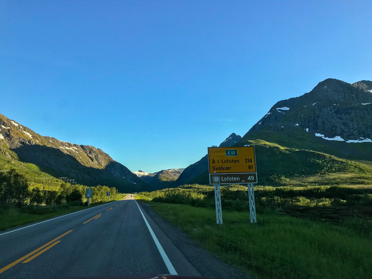 Теперь мы из региона Vesteralen движемся на сами Лофотенские острова. Путь наш лежит в город Свольвер, расстояние до него 210 км. Но, зная какие виды по пути, можно смело закладывать 5 часов.