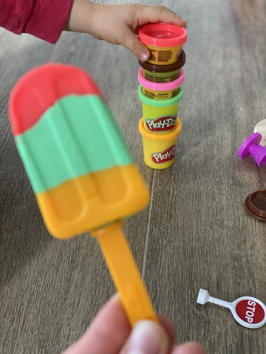 - Масса для лепки Play-Doh Мороженое Эскимо на палочке. Вот вообще нет. Бестолковые, одноразовые какие-то формы. Дальше валялись без интереса, даже базовые баночки от пластилина более органичны в игре.