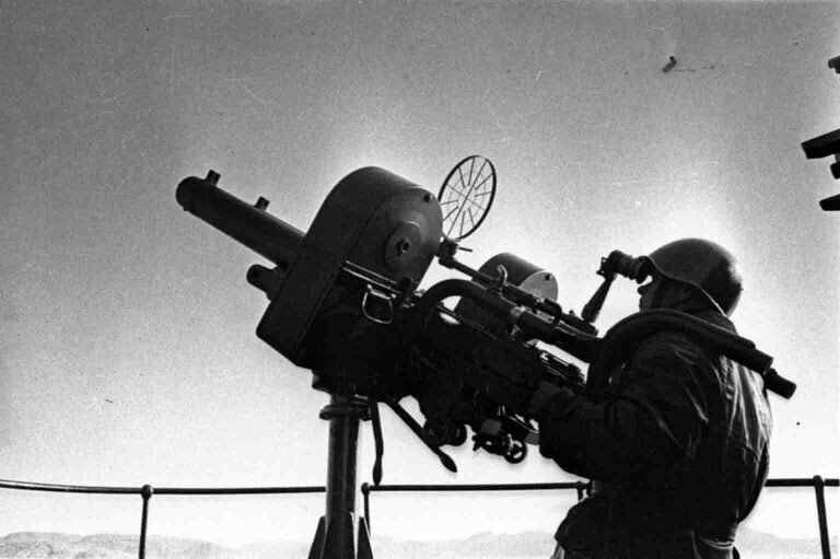 A twin 12.7-mm Colt-Browning M2 machine gun (water-cooled) of American production on the ship of the Soviet Navy. 12.7-mm Colt-Brownin g M2 machine guns were supplied in large quantities to the USSR in Lend-Lease and were widely used in the navy.