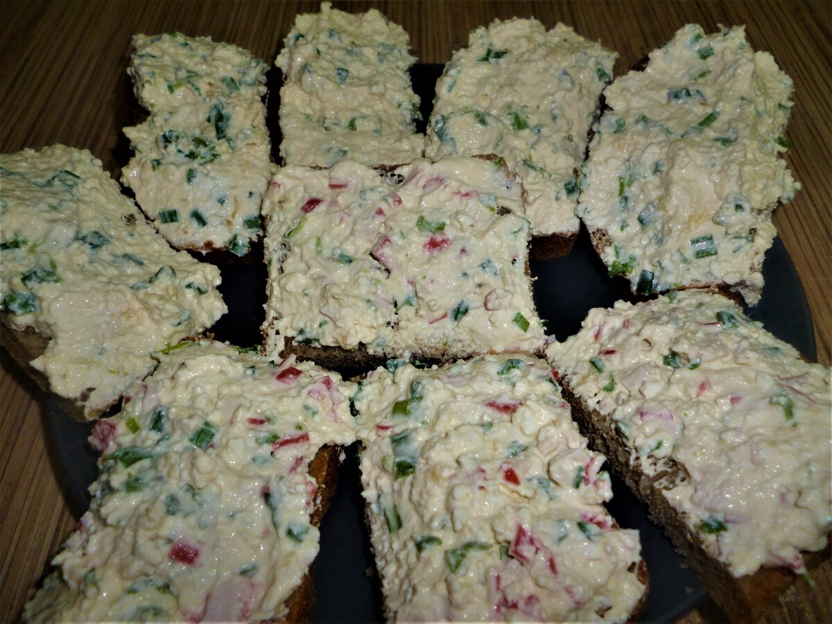 По поводу чеснока. Он, конечно, играет немаловажную роль. Но, если бутерброды подаются на завтрак перед работой или школой, и вы опасаетесь дурного запаха, можно его и пропустить или добавить совсем чуть-чуть.