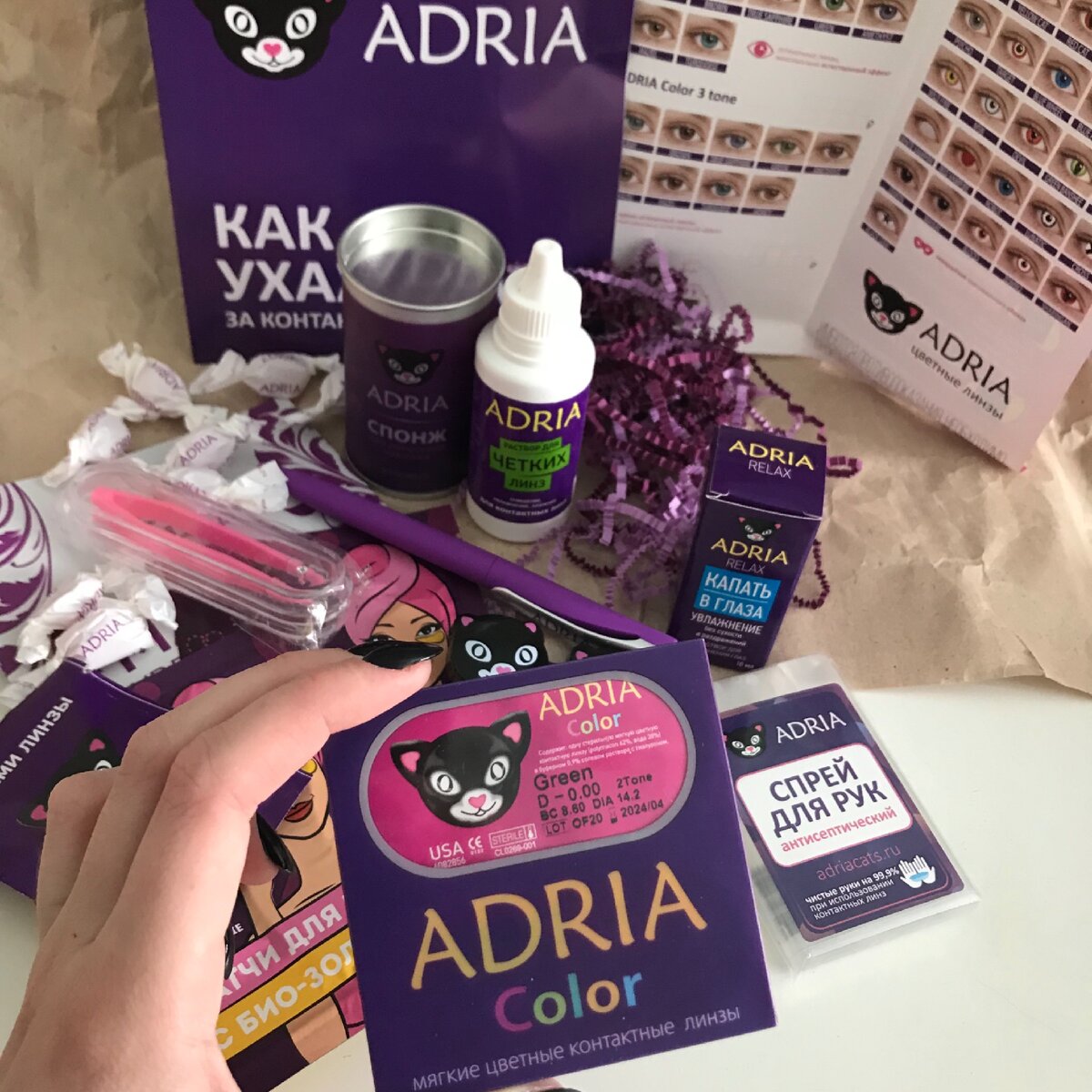 Долгое время я хотела, чтобы у меня были зелёные глаза, просматривала огромное количество магазинов с контактными линзами, но то отзывы были плохие, то цены заоблачные, то некомпетентные сотрудники магазина. Отчаявшись начала спрашивать у знакомых, чтобы они мне посоветовали магазин, и практически все мои знакомые посоветовали ADRIACats.