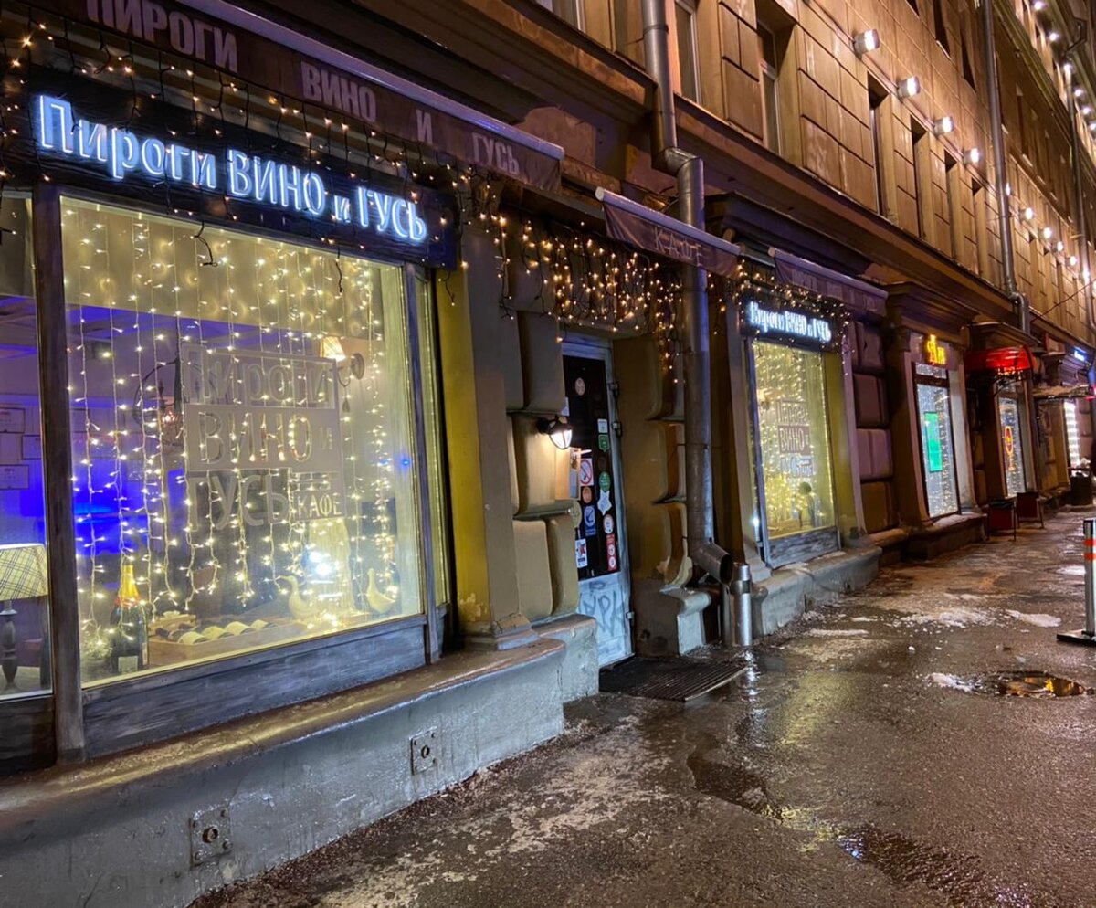 25 февраля, вечер, Цветной бульвар, тротуар мокрый и скользкий, мы, придерживая друг друга, пытаемся поймать баланс, чтобы не свалиться в лужу. Перемещаясь мелкими шажочками по бульвару, мы обратили внимание на большие окна с блестящими гирляндами и неоновой вывеской «Пироги ВИНО и ГУСЬ» . Мечтая поскорее очутиться в теплом кафе, мы устремились к «обшарпанной» двери в наклейках и граффити.