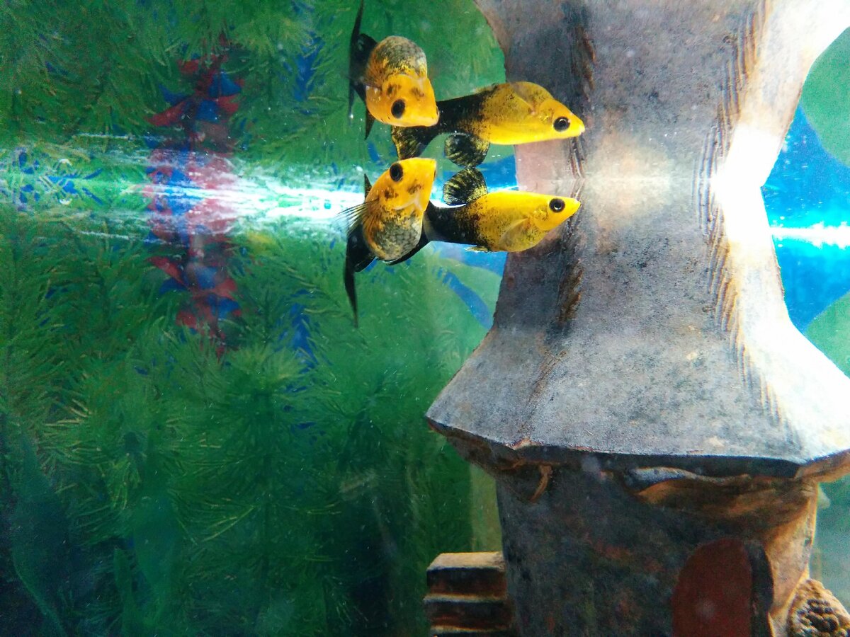 Очень интересным дополнением к интерьеру конечно является, растительность, а также всевозможные готовые элементы, такие как - замки, корабли, корни или камни. Чтобы ограничить доступ солнечного света, стоит также приобрести фон, приклеенный к задней стенке аквариума.