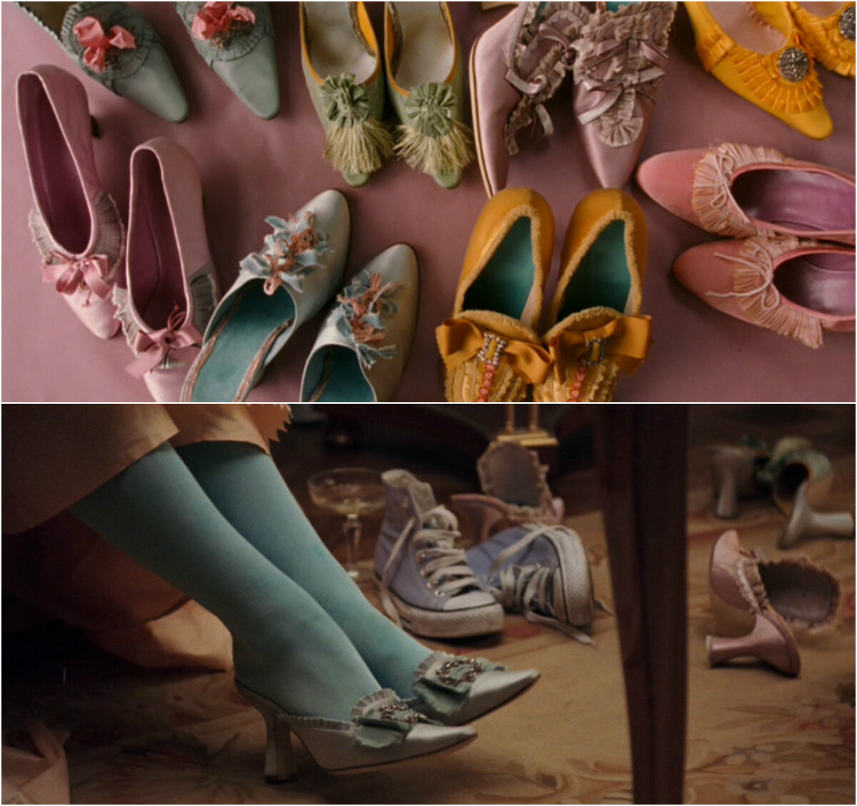 Очень люблю кадр фильма, в котором вместе с королевской обувью в стиле рококо – кеды конверс. Такого много в фильме! Классный саундтрек - от барокко до панк-рока.